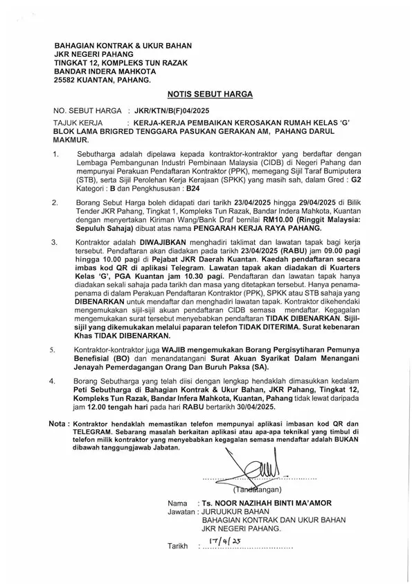 KERJA-KERJA PEMBAIKAN KEROSAKAN RUMAH KELAS ‘G’ BLOK LAMA BRIGRED TENGGARA PASUKAN GERAKAN AM, PAHANG DARUL MAKMUR