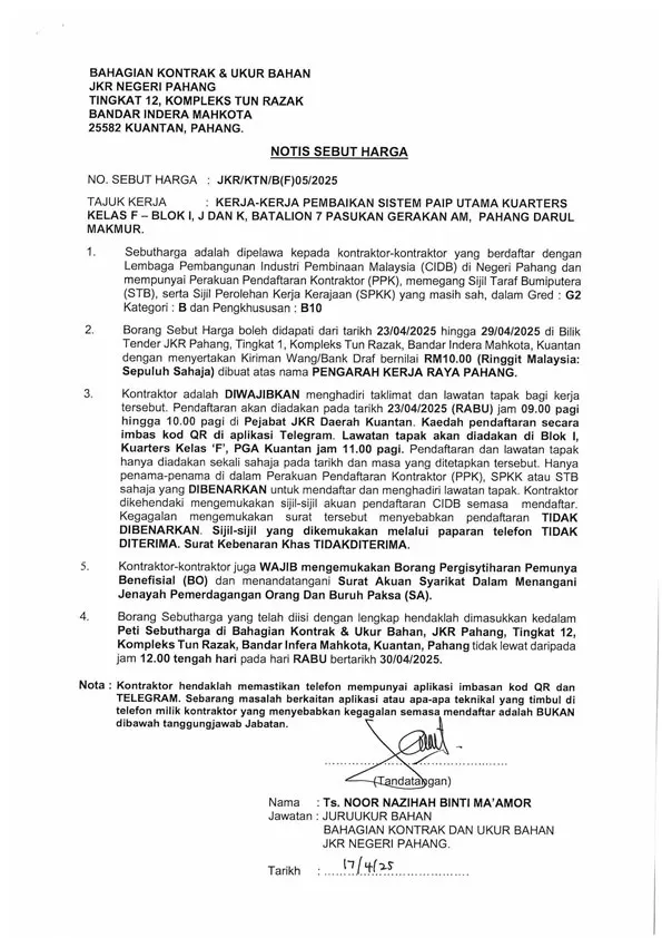 HomeAktivitiSebuthargaArkib SebuthargaKERJA-KERJA PEMBAIKAN SISTEM PAIP UTAMA KUARTERS KELAS F – BLOK I, J DAN K, BATALION 7 PASUKAN GERAKAN AM, PAHANG DARUL MAKMUR