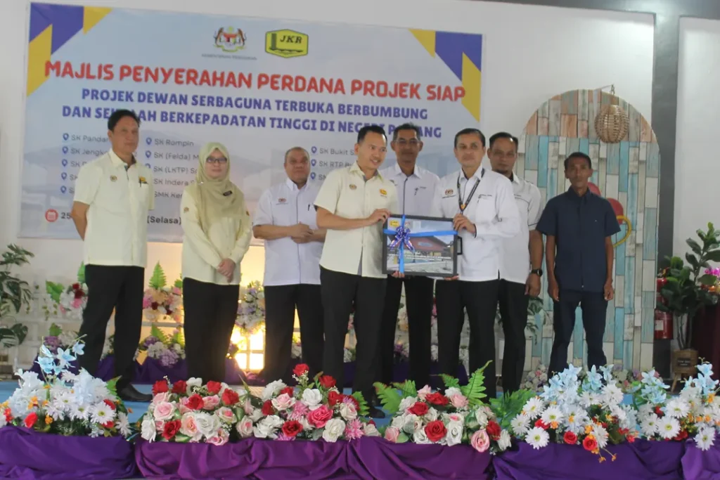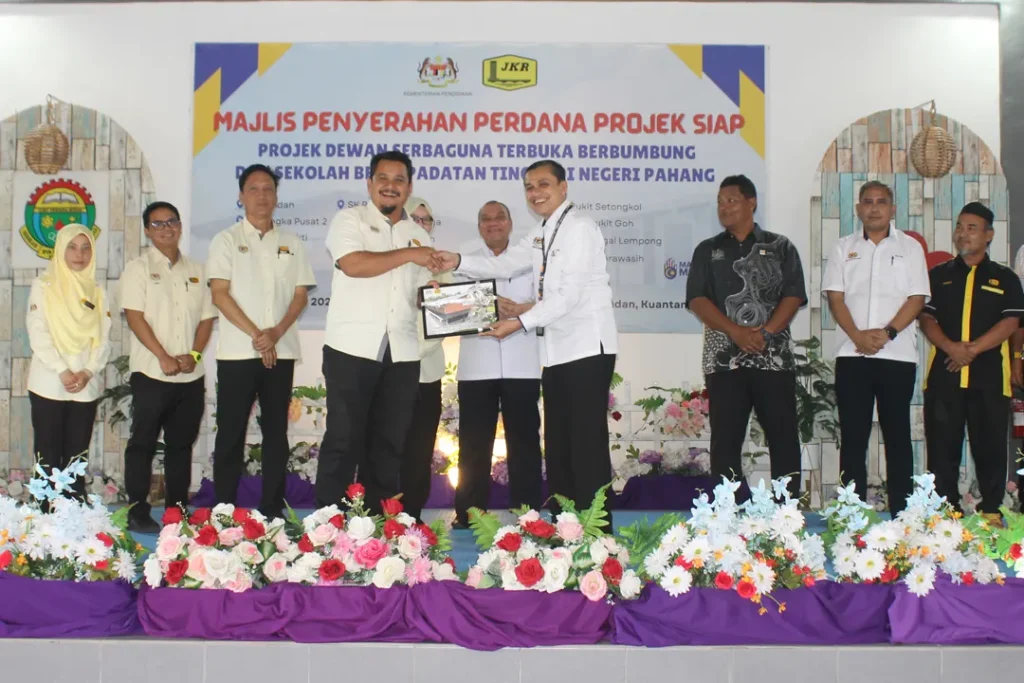KUANTAN – Majlis Penyerahan Perdana Projek Siap Dewan Serbaguna Terbuka Berbumbung (DSTB) Sekolah dan Program Menangani Isu Sekolah Berkepadatan Tinggi di Negeri Pahang telah berlangsung dengan jayanya di Sekolah Kebangsaan Pandan, Kuantan pada 25 November 2025. Majlis ini melibatkan penyerahan sepuluh (10) buah dewan serbaguna dan empat (4) pembinaan bangunan sekolah untuk menangani masalah kepadatan tinggi kepada sekolah-sekolah terpilih di Negeri Pahang, sebagai inisiatif memperkukuh kemudahan pendidikan yang lebih selesa dan kondusif untuk para pelajar.