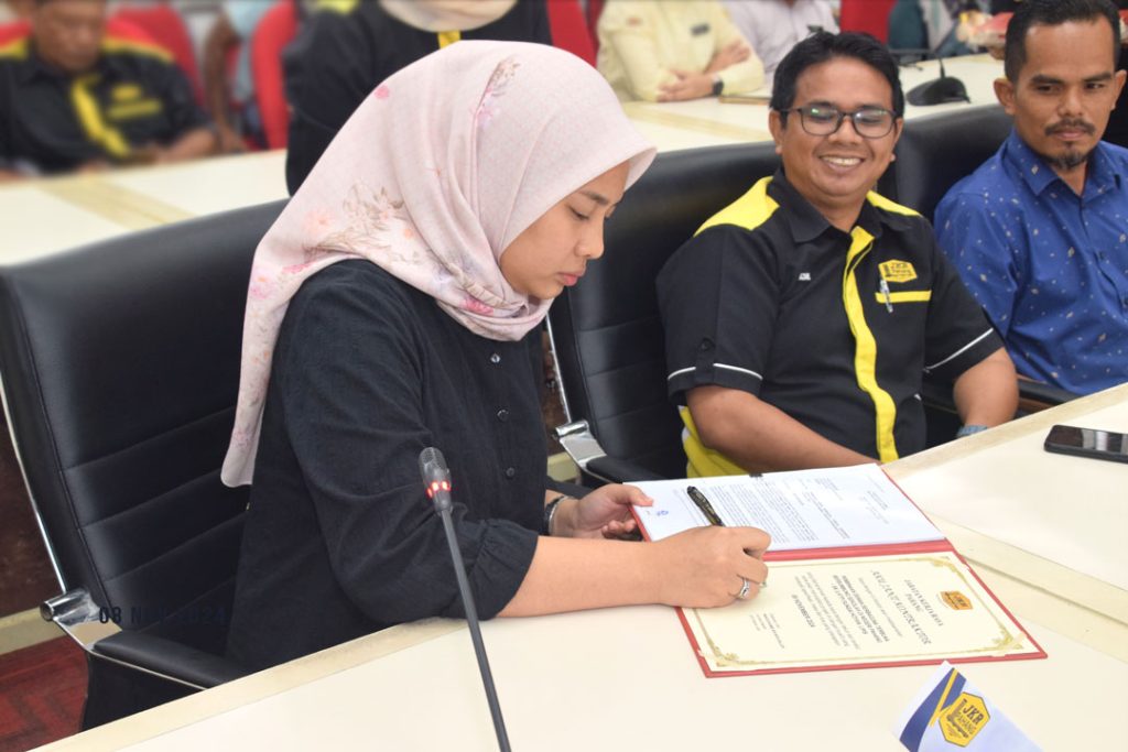 Seterusnya pihak kontraktor melafazkan ikrar dan menandatangani Aku Janji yang bersaksikan oleh Pengarah Kerja Raya Negeri Pahang dan Jurutera Daerah.