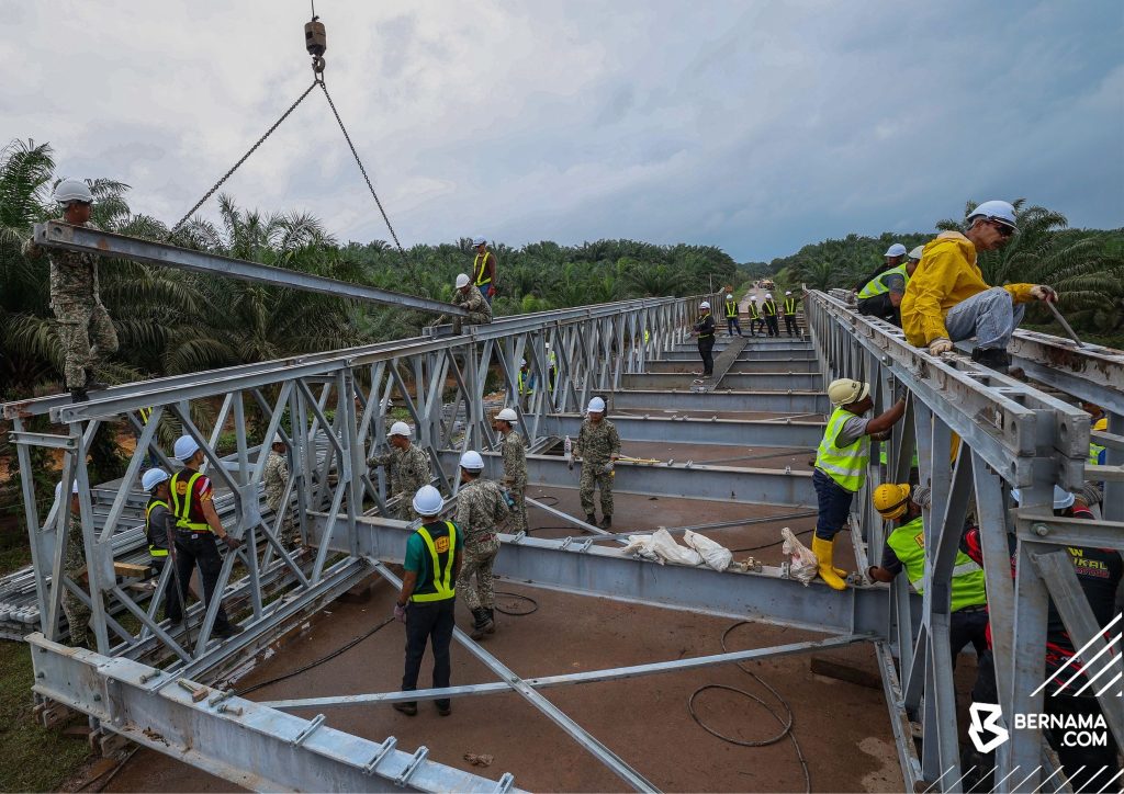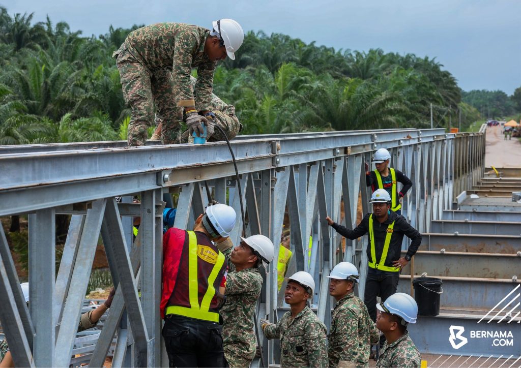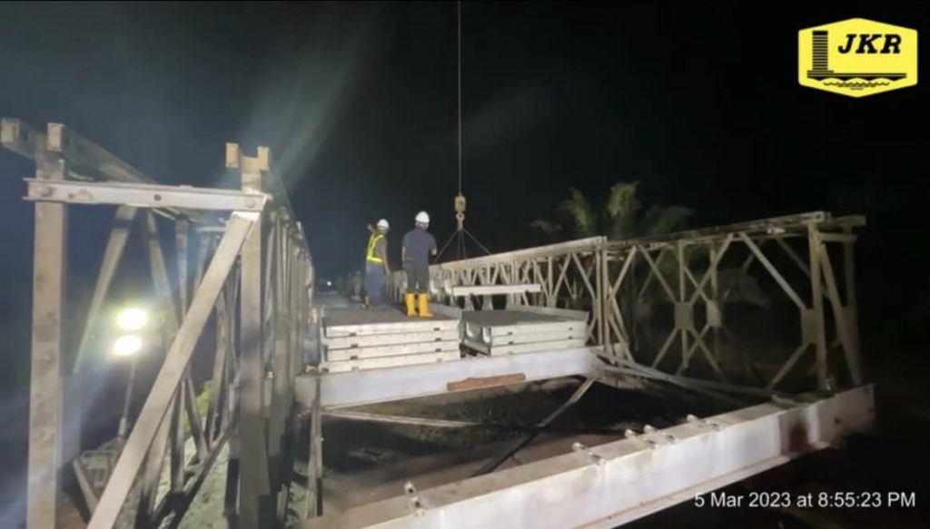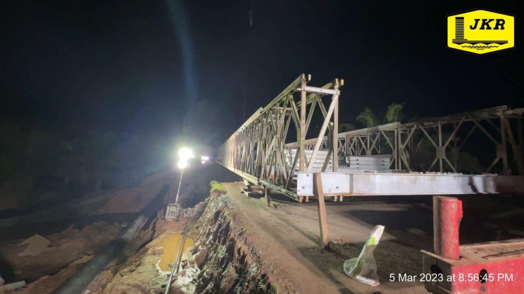 Dengan kerjasama padu dari semua pasukan, Jambatan Bailey telah berjaya disiapkan dalam tempoh 2 hari bermula sepenuhnya pada 4 Mac 2023. Pelbagai cabaran dihadapi dalam fasa pembinaan antaranya penggunaan jentera yang terhad dan ruang kerja yang sempit.