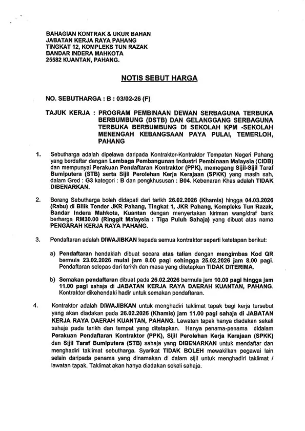 PROGRAM PEMBINAAN DEWAN SERBAGUNA TERBUKA BERBUMBUNG (DSTB) DAN GELANGGANG SERBAGUNA TERBUKA BERBUMBUNG DI SEKOLAH KPM – SEKOLAH MENENGAH KEBANGSAAN PAYA PULAI, TEMERLOH, PAHANG DARULMAKMUR